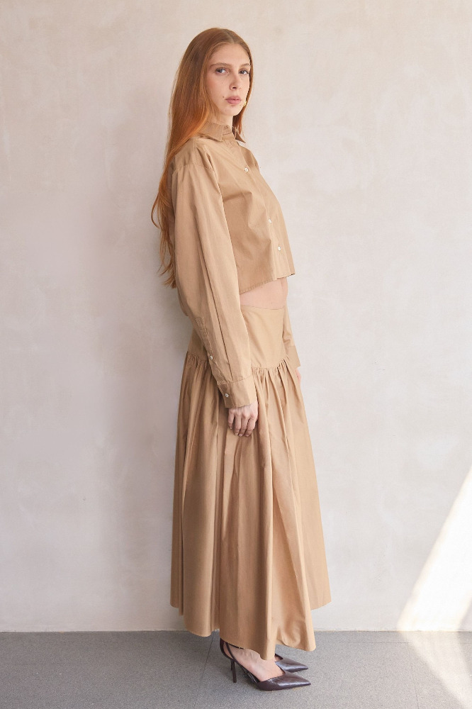 Now updated in a cropped version, this button-down shirt is a timeless summer staple. Featuring a boxy fit, side slits, a single chest pocket, and elegant mother-of-pearl buttons, it's finished with a washed effect for effortless, lived-in charm and easy layering. Pair with the matching Magnolia Skirt.
