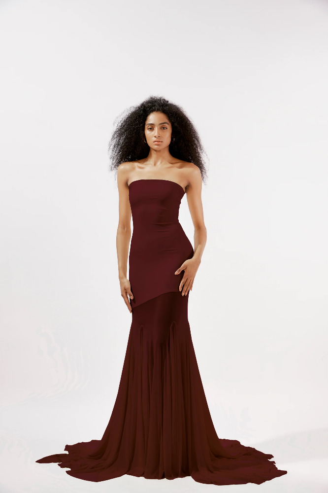 Indulge in the allure of sophistication with this butter yellow malai lycra tube gown, adorned with flared mesh panels for a touch of whimsical charm. The strapless bodice contours your figure with a flattering silhouette, while the buttery hue infuses warmth and vibrancy into your ensemble. Flowing from the waist down, the flared mesh panels add movement and dimension, creating an enchanting aura as you glide across the room. This gown exudes timeless elegance and feminine grace, ensuring you stand out with effortless poise and style.