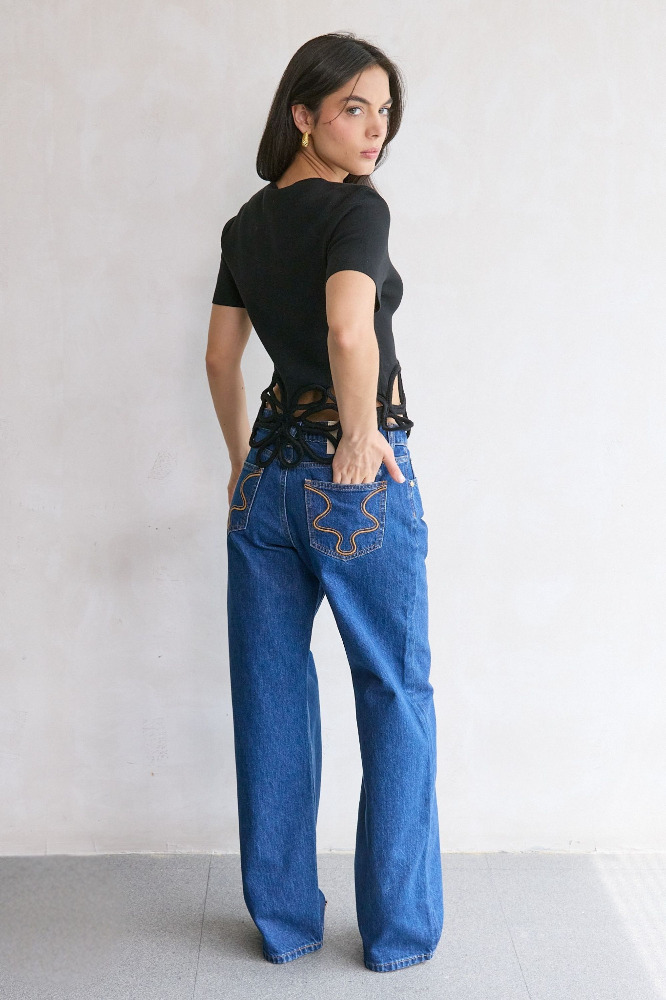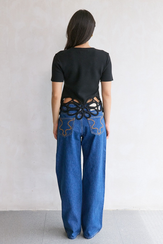 — Corded crochet cutouts at hem
