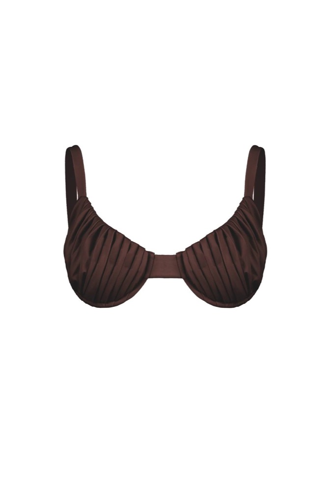 Its hand-pleated details, inspired by seashells, add an elegant and sculptural touch to a classic bra.