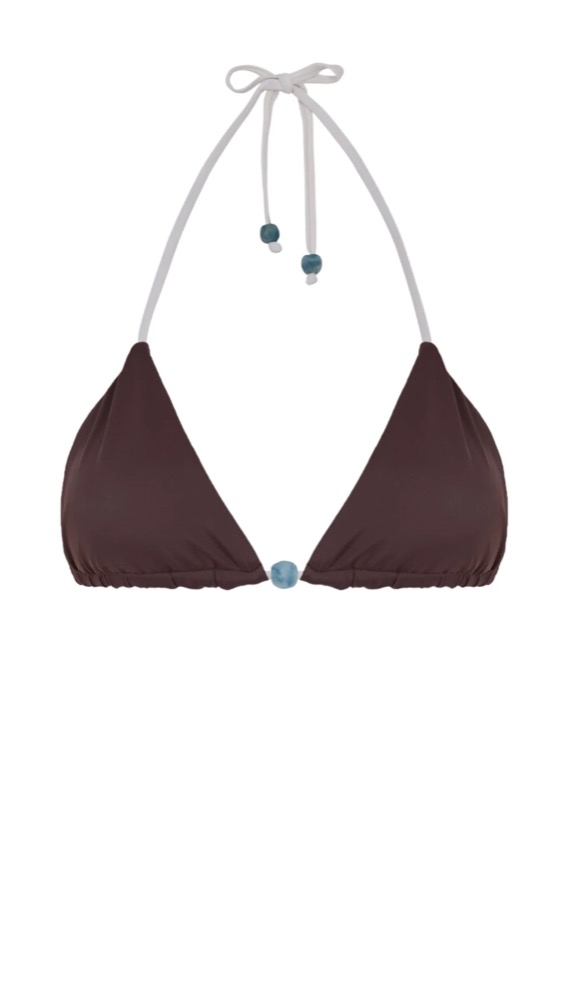 bikini. Featuring a stunning contrast of our signature Bone and Espresso colors and decorative recycled sea glass beads from Tanzania to add a touch of tropical nostalgia. This re-imagined triangle top effortlessly flatters your figure and is completely adjustable to mold perfectly to your body.