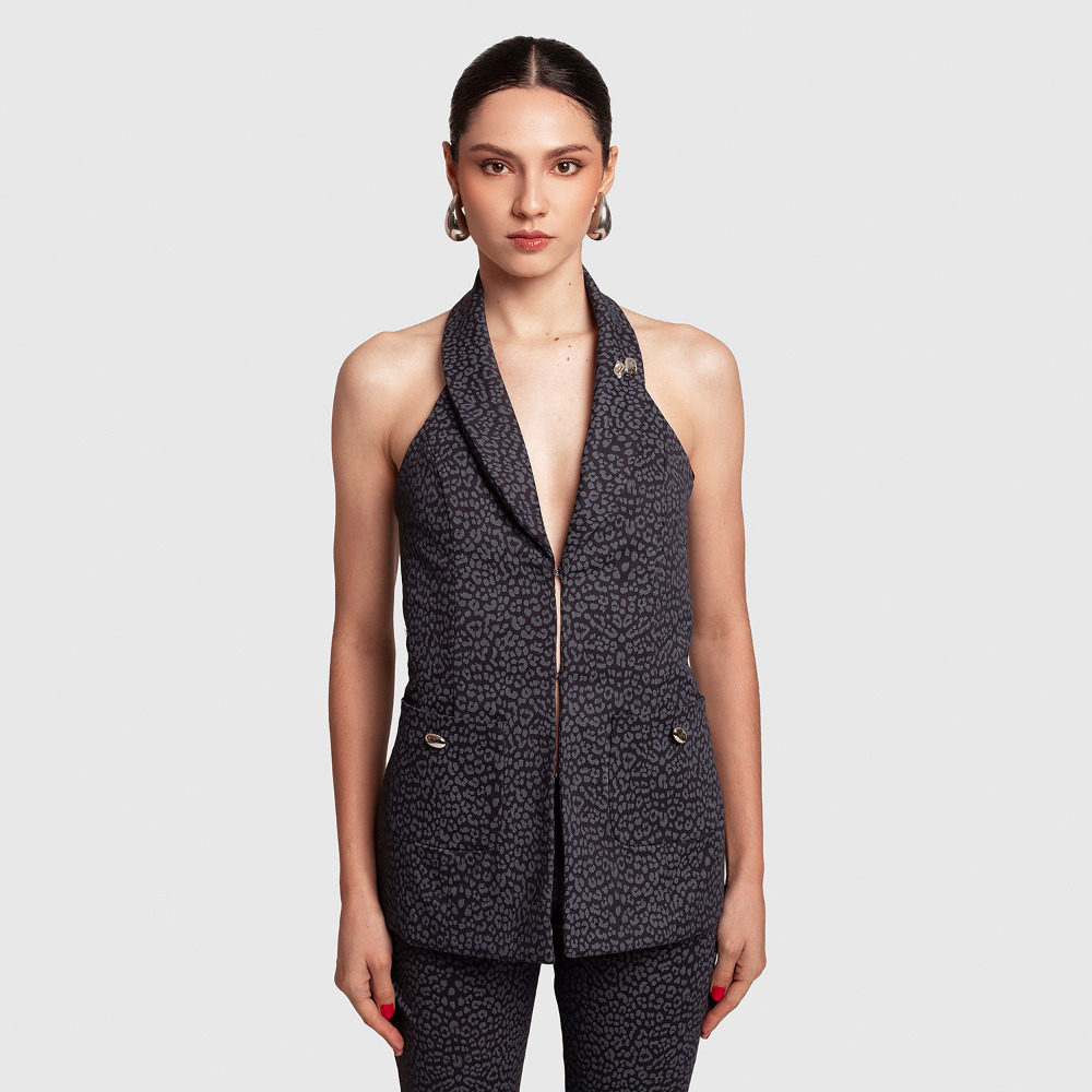 El complemento perfecto para los pantalones o falda Artemis. Un chaleco estructurado con botones al frente para un look sofisticado.