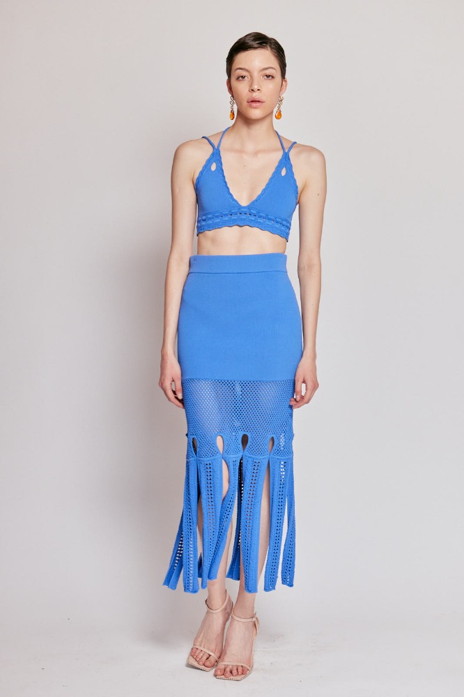Cut in a compact knit, the Kiara midi skirt features engineered pointelle carwash hem. The stretch pull-on style makes this item an easy choice for day to night dressing. Style it back to the Buras top and Smyth cardigan.