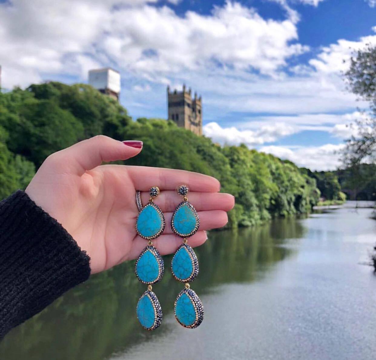 Turquoise Triple Stalactite Earrings, Original fine jewelry creation
