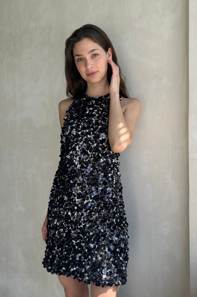 • Fits true to size, take your normal size • Designed to be fitted at the bust and waist, loose at the hip • Fully sequined • Length (collar to hem): size 00 to size 0 - 31.5", size 2 - 31.9", size 4 - 32.3", size 6 - 32.7", size 8 - 33.1", size 10 to size 14 - 33.5" • Model's measurements: height 5'9" bust 32" waist 25" hips 36" • Model is wearing size 2